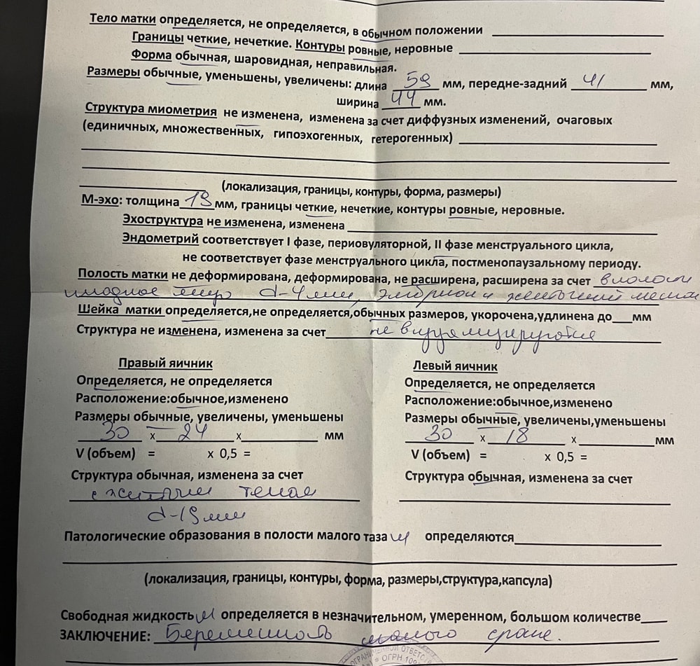 сказали прийти ещё раз на узи через неделю, чтобы понять, все хорошо или нет, а также во вторник сдать кровь на хгч