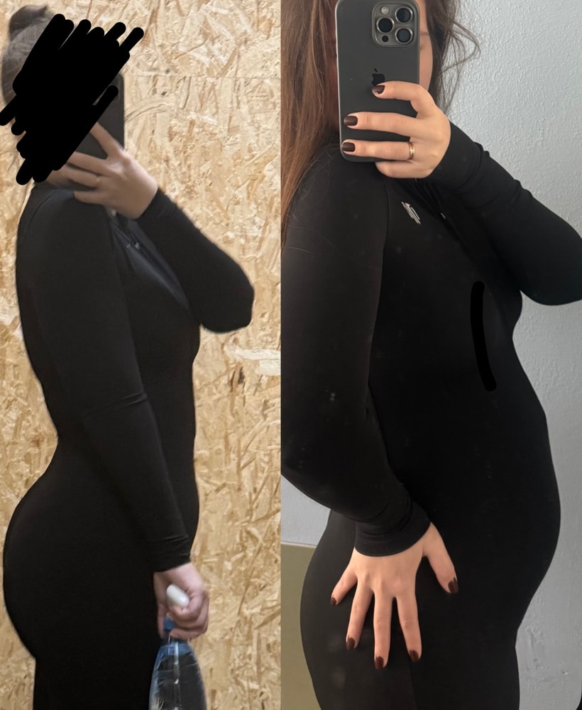 Фото пузиковВсем привет!Интересует вопрос-это беременный живот или жирок просто?Первое фото за месяц до беременности,а второе-сегодня на голодный желудок,срок 18 недель.Набрала за это время 2 кг,а может уже и больше.Когда лежу на боку этот живот растекается и будто складка жира.Помогите,я не могу трезво на себя посмотреть😂
