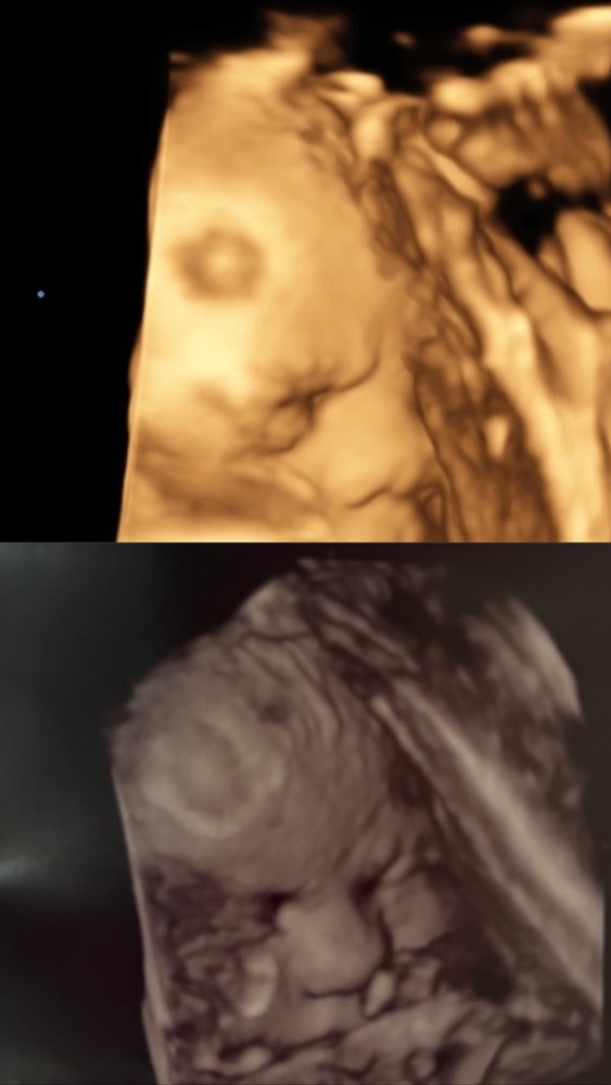 Это, вероятно, место, в которое ребенок головой упирается. Не пытайтесь ничего найти на фотке 4д, это бессмысленно и бесполезно