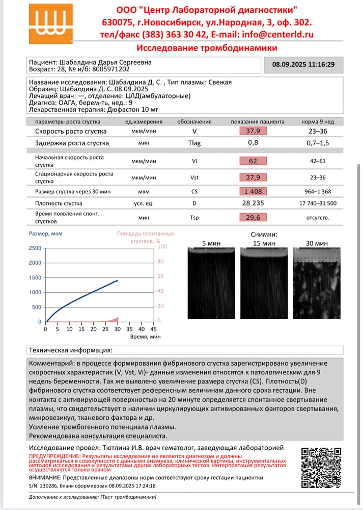 Анализы, скринингиВсем привет! Подскажите, пожалуйста, может кто-то сможет помочь с расшифровкой тромбодинамики 🙏 срок 9 недель 4 дня.