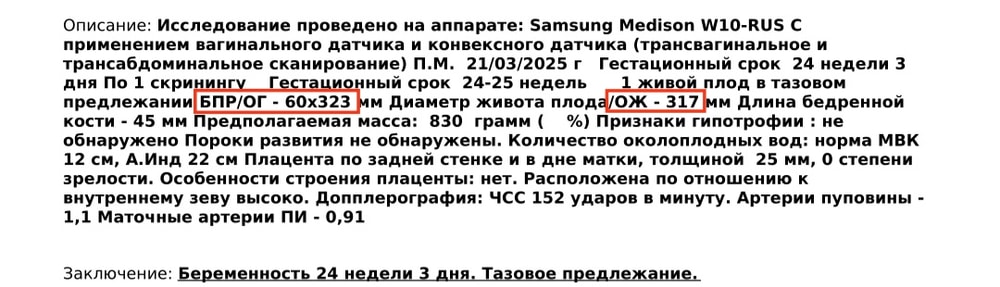 И вот прошла пятница, выходные, наступил понедельник. За это время в стационаре взяли только основные анализы, сделали УЗИ. С УЗИ отдельная история. Смотрю протокол исследования - ОГ 323, ОЖ 317. И понимаю, что такого не может быть просто на 24 неделе 🫣