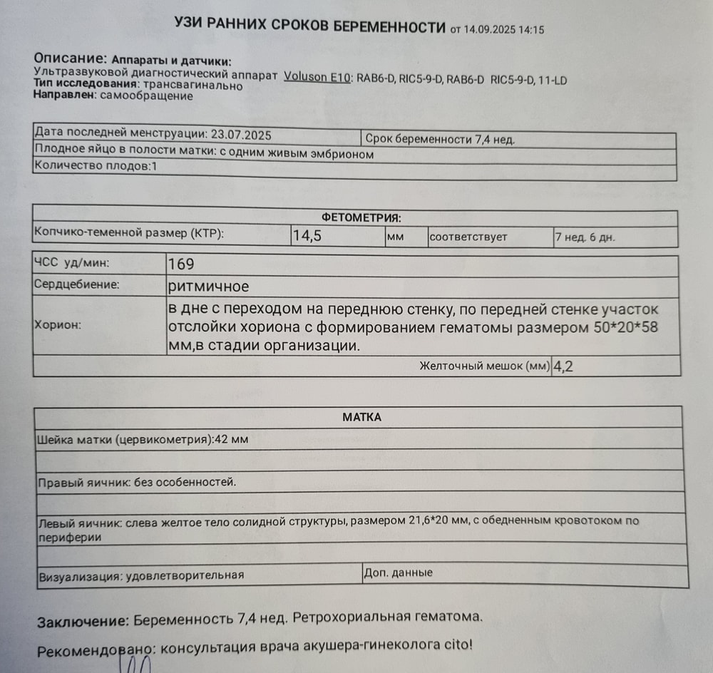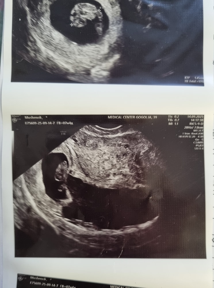 На таблетках и уколах😕 После б×б в следующем цикле вот такая беременность, с угрозой, отслойкой и огромной гематомой. С кровотечением приехала на скорой в больницу,лежу уже 8 дней. Неизвестно,что скажет врач завтра. Я прошла платно УЗИ в клинике. И вот какой результат