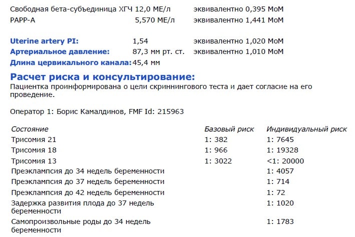 По замерам и рискам все вроде бы хорошо, но смущает низкий уровень свободного ХГЧ. Доктор, который делал скрининг, сказал, что все замечательно. Надин Моктаровна ответила, что да, чуть низковат, но некритично учитывая, что РАРР-А хороший и нормальный PIGF (37,6 нг/мл), риски везде низкие. Но если очень хочется, то можно сдать НИПТ. Вот теперь думаю...
