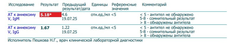 В этот раз по плану сдавала только те, что повышались до этого. Волчаночный с кардиолипином хорошо снизились, что значит, что в этом месяце иммуноглобулины не капаем. К аннексину чуть выросли все-таки, но вроде бы некритично.