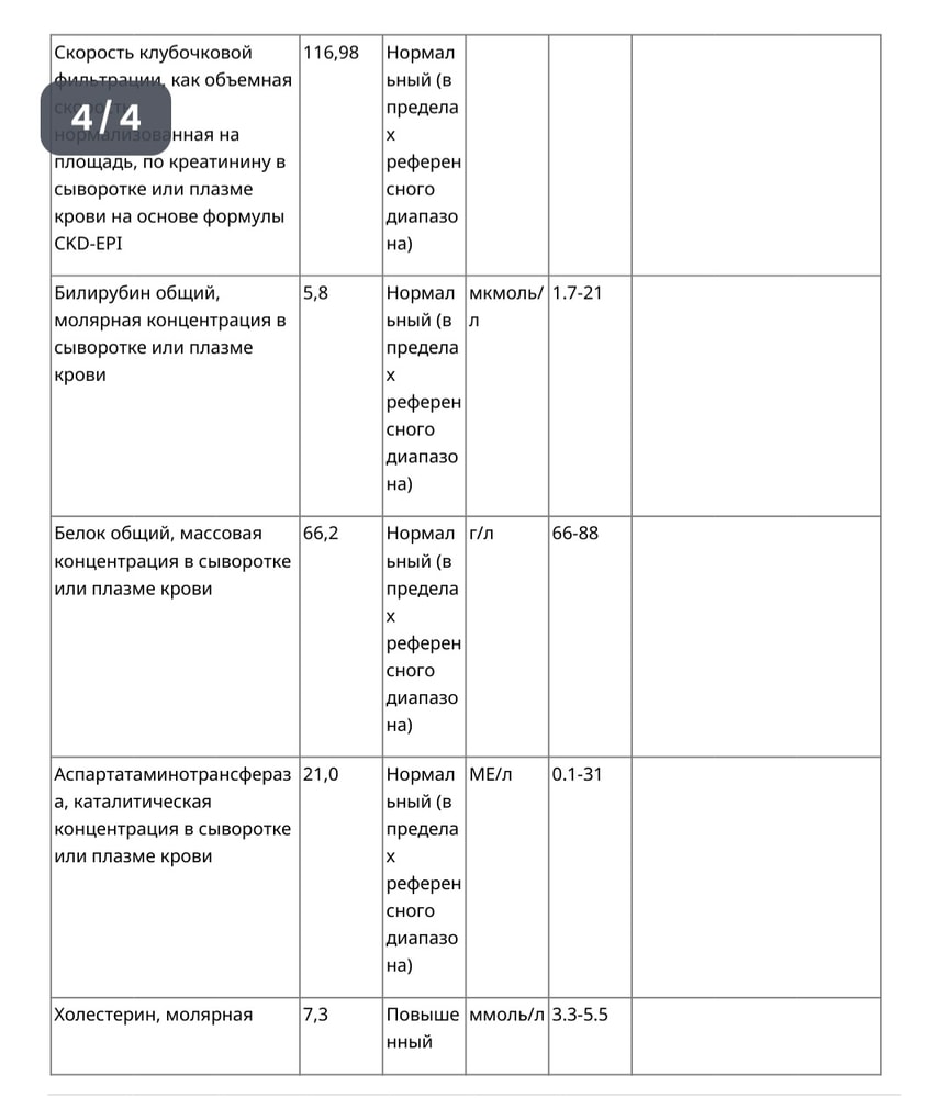 Меня не так беспокоит ваш креатинин, как холестерин. Печёночные пробы в норме, но как выше середины референса.