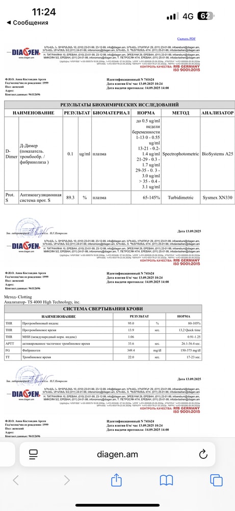 ГемостазДевочки подскажите пожалуйста, у меня беременность 4-5 недель у меня есть ген. мутации гемостаза и фолатного цикла в понедельник сдала анализы все было ок но вчера вечером болела левая нога будто тянуло потом левая рука и один полец и сегодня тоже рука , мне не больно но есть дискомфорт стоит сдать анализы еще сегодня может кровь стать гуще так быстро, в прошлом у меня были 2 зб