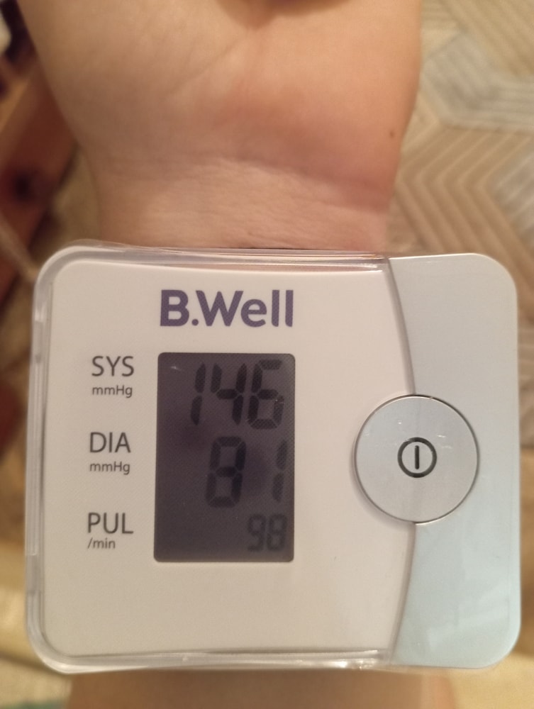 Измерьте обычным тонометром, который выше локтя надевают. Давление у вас высокое, надо к кардиологу или хотя бы своему гинекологу. Риск преэклампсии возможен при высоком давлении. Из разрешённых препаратов прописывают допегит. Вчера у меня тоже поднималось, кардиолог разрешил принимать разово, если поднимется 135 и выше, хотя пишут, что надо курсом пить. Но не хочу пичкать себя и ребёнка постоянно таблетками, если давление в норме. Про высокий пульс уточняла, он у меня выше сотни почти всегда. Врач сказал, что это в Б нормально, т.к. организм работает за двоих.