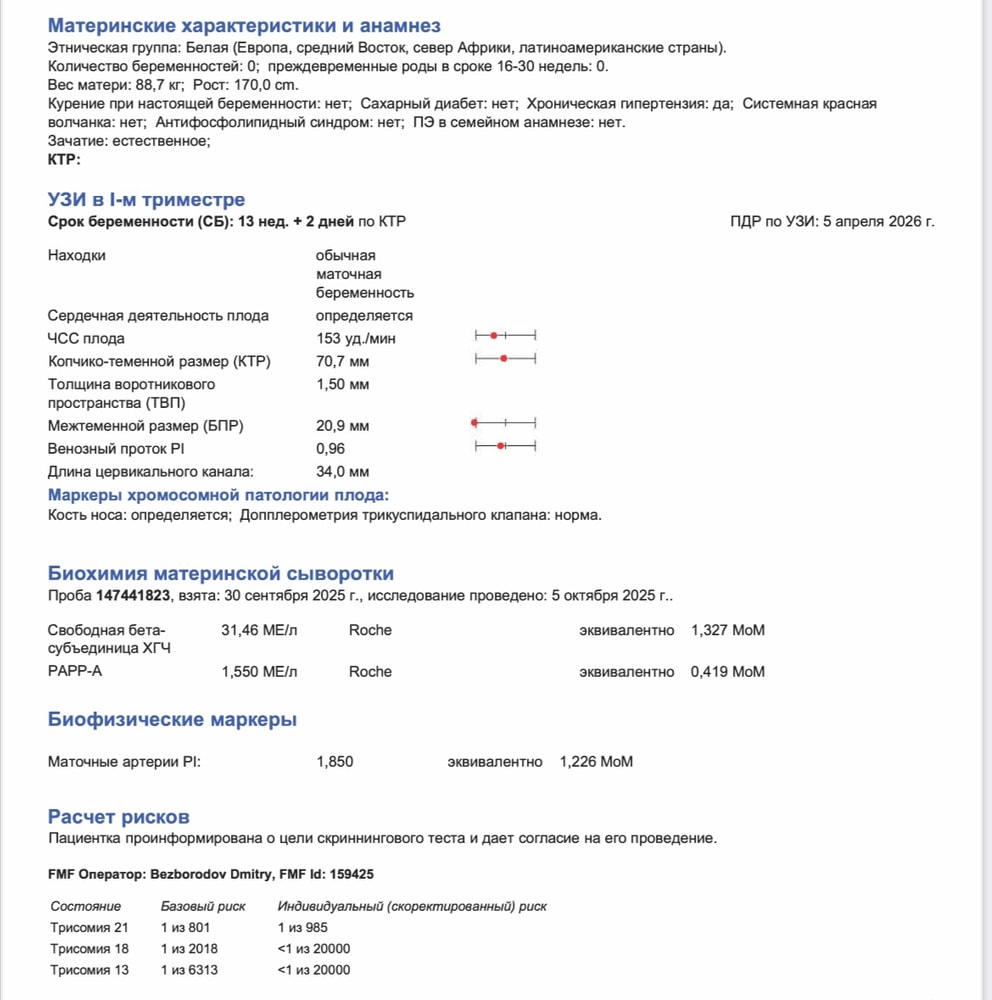 Отправила врачу, сказала, что риски хромосомных аномалий низкие, но остальное обсудим на приеме, теперь переживаю…