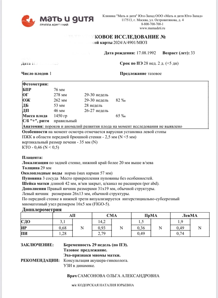 УЗИ в 29 недель
