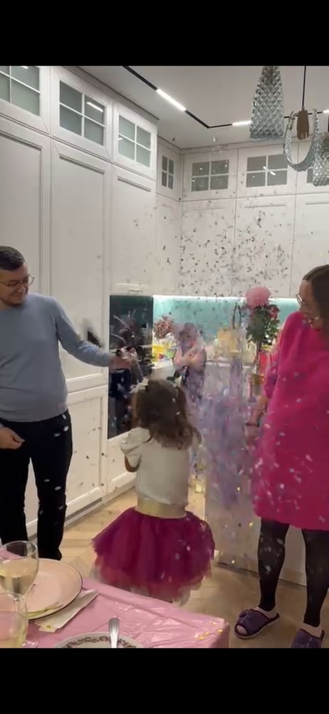 Мария, попросила маму наполнить. Как окащалось она не до конца знала что конкретно надо делать. В итоге конфетти было и розовое и голубое. Спасла записка с узи😄