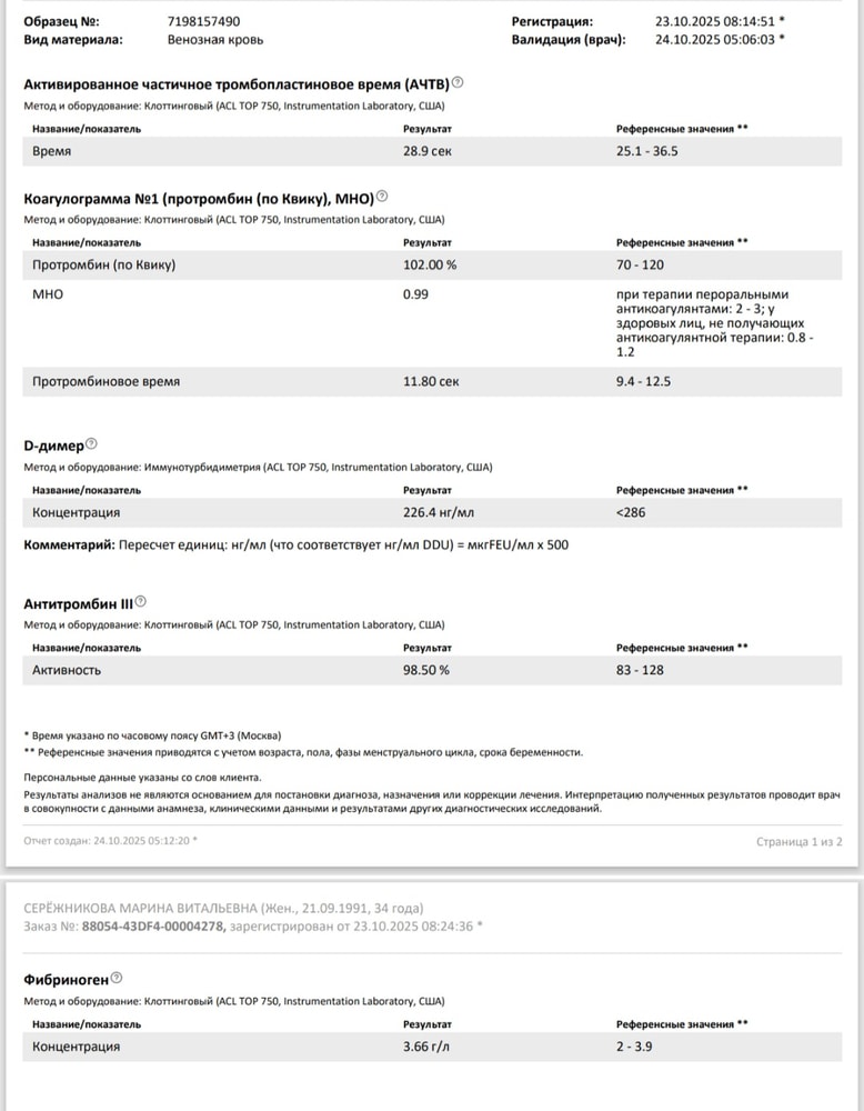 ГемостазЗдравствуйте! У меня 4 беременность. В 7 недель по узи случайно был найден тромб в вене малого таза. Назначили мне фраксипарин сначала 0.3 2 раза в день, потом 0.4 1 раз в день. Сейчас срок 15 недель. Тромб рассасался, уже его по узи не видно. Сосудистый хирург отменяет фраксипарин. А я сколько везде читаю что все девочки колят его до родов и ещё после родов. Боюсь отменять. Кому то так отменили, не будет ли рецидива тромба? Из всех анализов что мне назначати все в норме. К Гематологу только через 2 недели попаду. Что делать подскажите кто сталкивался .