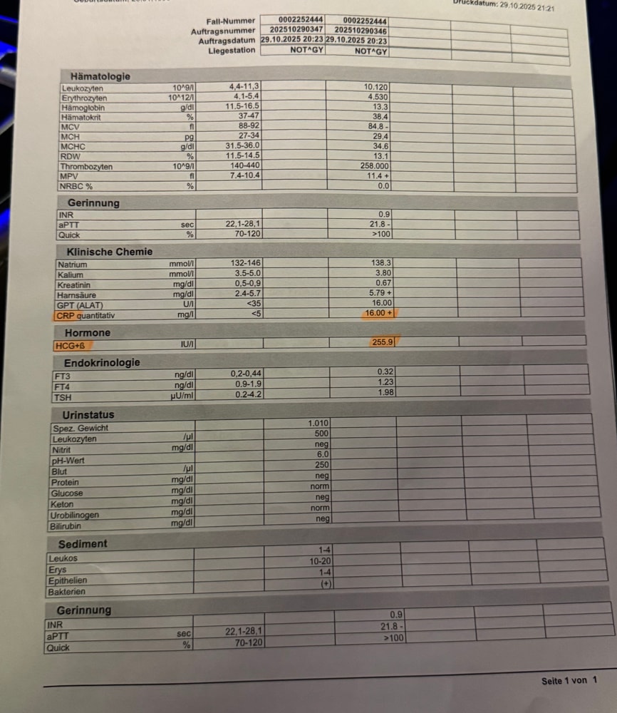 22.10.2025 сдала кровь на ХГЧ — результат 25 mIU/ml.