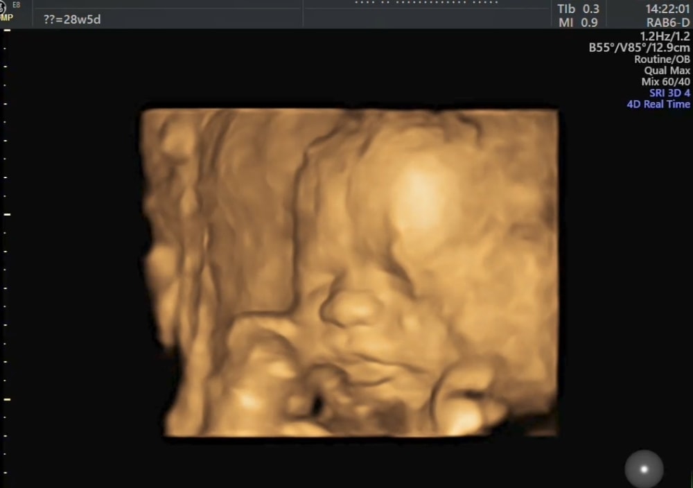 УЗИ, КТГ, доплерИ улыбался, и пальчик пососал, и язык показал, а лицо не очень хотел показывать. Руками и ногами закрывался постоянно.