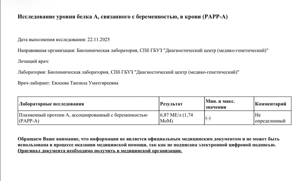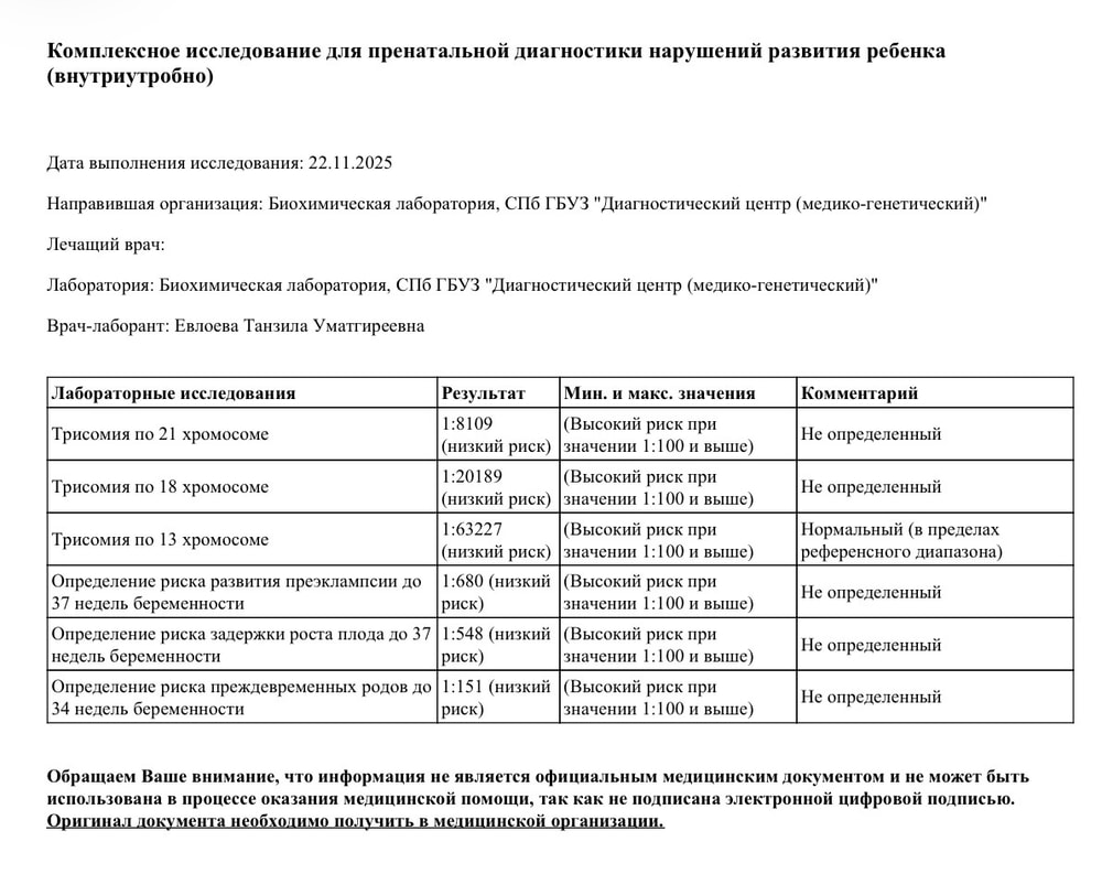 Embri, нет, именно этим и запомнился случай, что был пгт. Но я вообще не вижу смысла тут спорить. Случаев всяких миллион бывает. Поступайте, как считаете нужным 🤷♀️ В той истории пришёл 1 скрининг с рисками, у Вас он хороший 🤷♀️