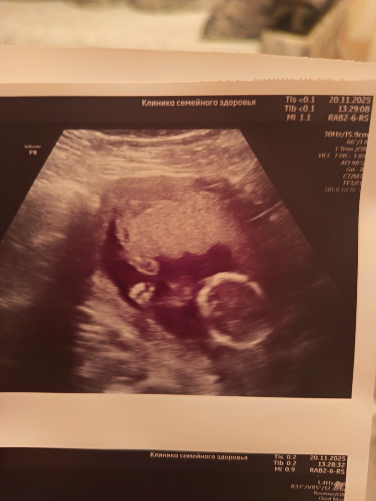 20.11 была на УЗИ, врач всё посмотрела, сказала отлично, малыш растёт. Пол врач увидела, но как мы с мужем и решили, будем делать гендер пати когда он приедет с вахты в середине декабря, эх терпения мне🤭😁уже не терпится узнать кто же там в животике живёт 😍 на УЗИ малыш как врач сказала с характером, даже не получилось сделать красивые снимки, лежит не удобно, но как по мне, эти даже ещё лучше🥰💗 сначала спал, мы его пока делали УЗИ разбудили, малыш стал кулаки показывать, попу, а в конце вообще спиной развернулся😁🤭 на секунду даже показалось что мальчишка😊 по весу написали 118 +/- грамм счастья😍 девушки, у кого примерно такой же срок, как у вас дела, как самочувствие? 😊