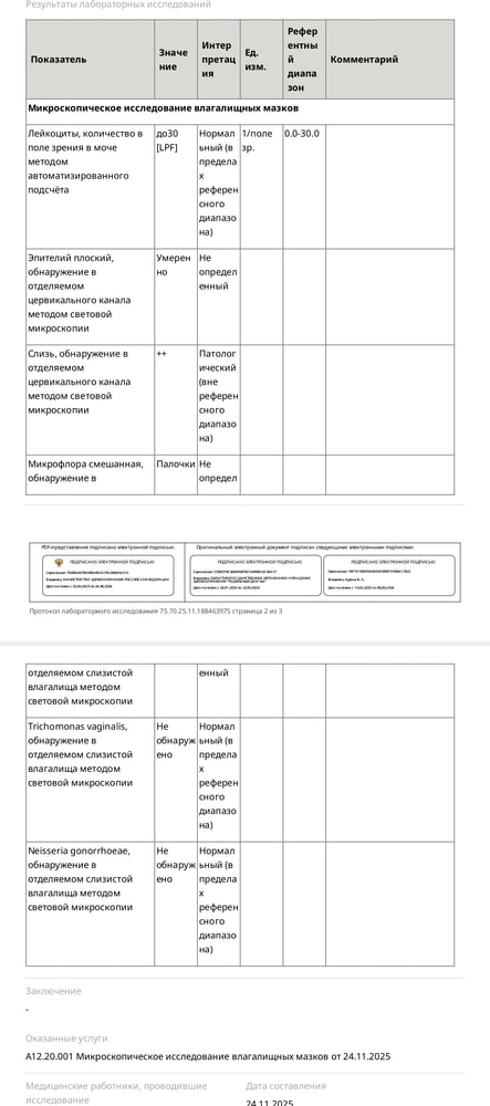 Анализы, скринингиПришел на госуслуги результат мазка. Все показатели в норме, кроме одного: "слизь, обнаружение в отделяемом цервикального канала ++ патологический". Насколько это плохо, стоит волноваться? К гинекологу в ближайшее время не планировала идти, плановый прием 4 декабря.