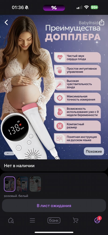 Вот, чтобы не бегать часто на УЗИ, решила на свою голову купить фетальный допплер на ВБ, частота 2,5 мгц. Отзывы есть и хорошие и плохие, я особо не вникала, но написано, что можно использовать с 9 недель.
