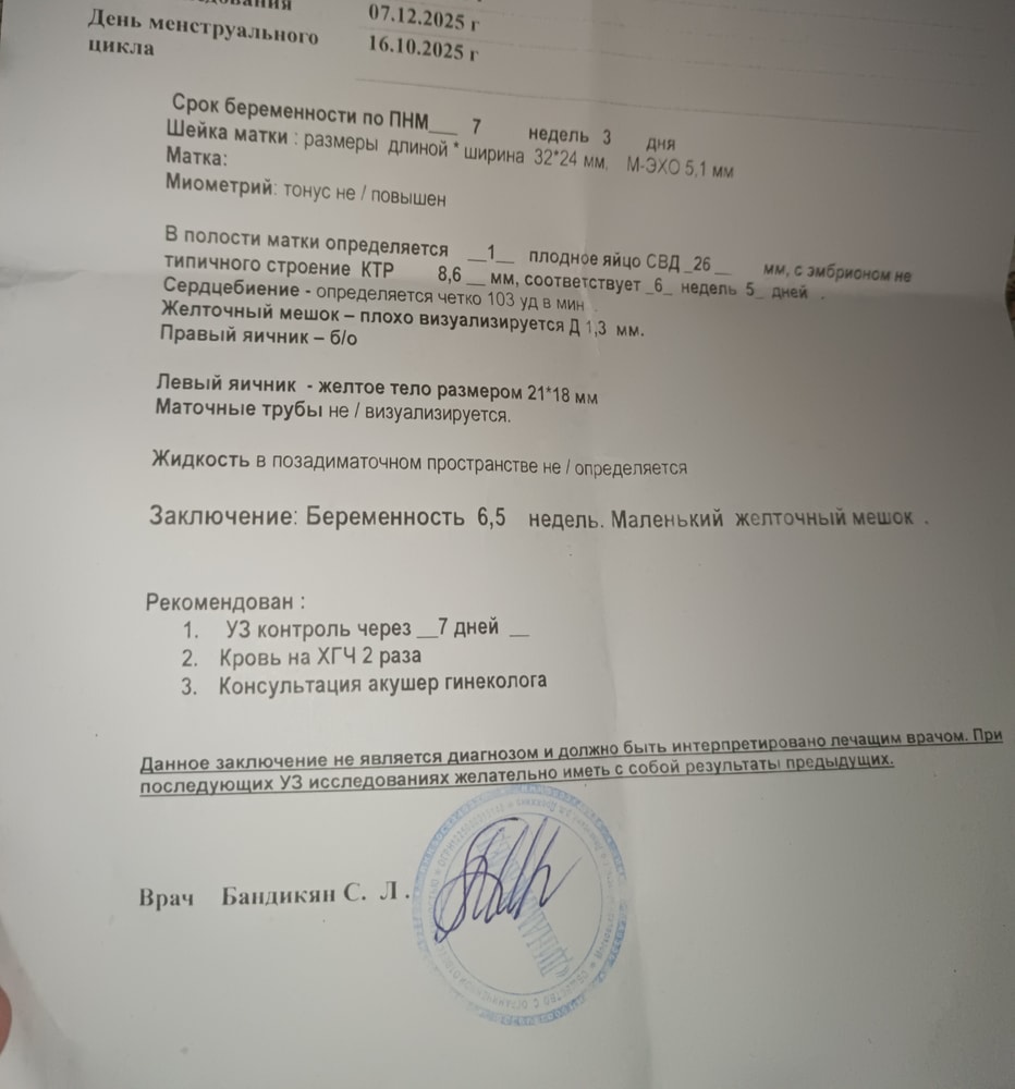 Узистка сказала,что картина плохая, желточный мешочек критически мал,ЧСС 103 всего,маловато. Намекнула,чтобы я готовилась к худшему,лежу реву
