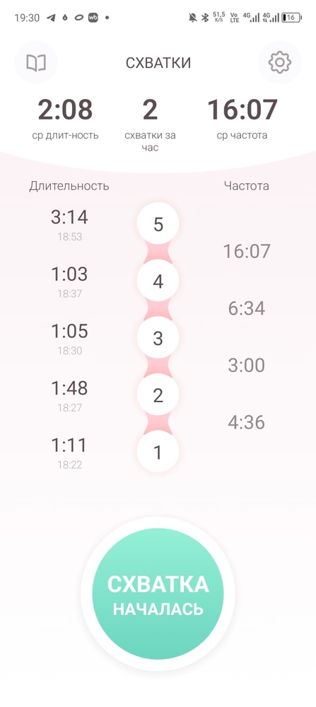 Вот такие вот схватки были, приложение мне уже написало "будьте готовы, соберите сумки и документы"