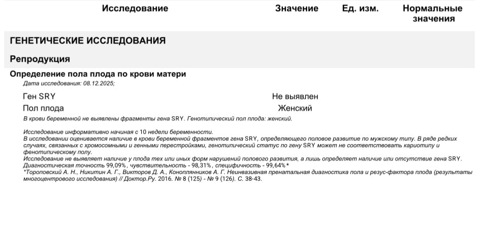 Спустя всего сутки пришёл анализ крови на пол - у нас доча!🍓💘❤️ Мы счастливы, так как хотели именно девочку! Через 4 дня скрининг, надеюсь и там всё хорошо.