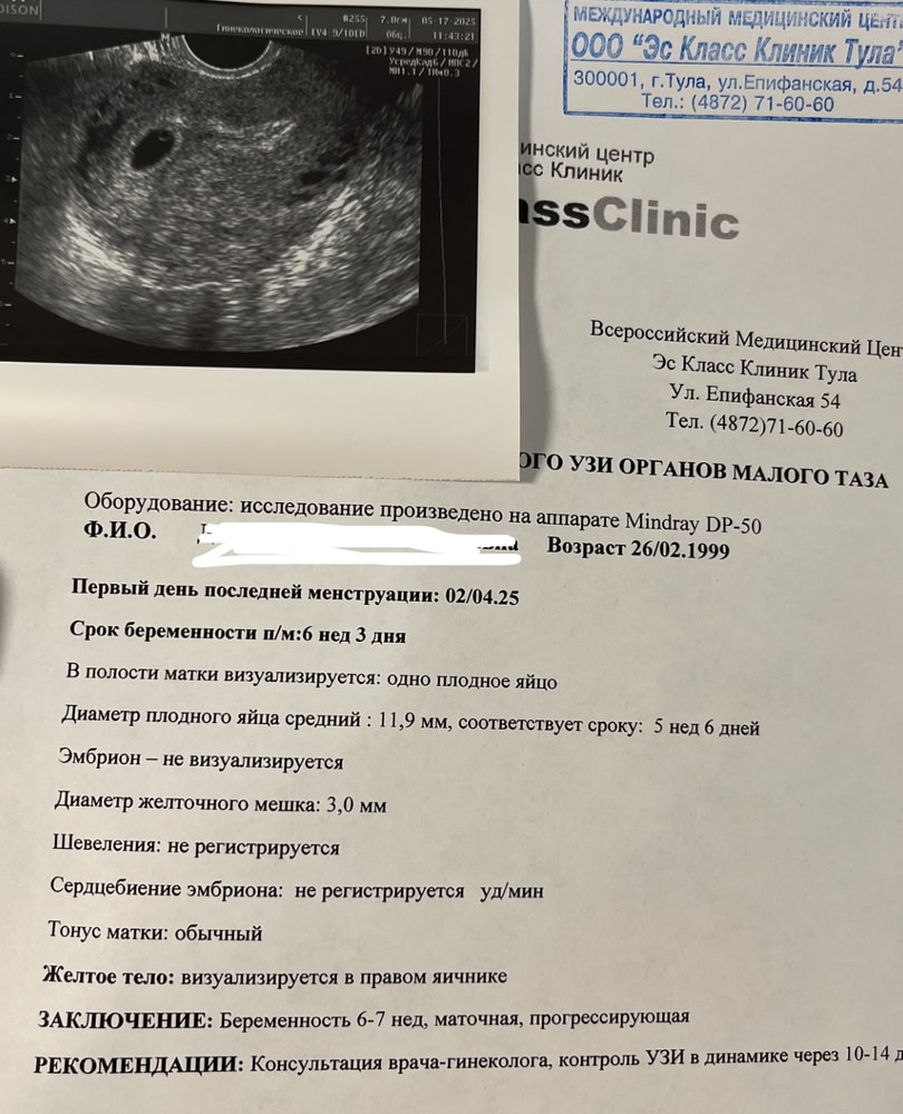 Ходила сегодня послушать сердечко, но ещё не видно эмбриончика. С сыном на этом сроке уже увидели эмбриона и сб.