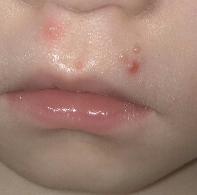 ДерматологияУ сына насморк,под носом вылезли какие-то прыщи,сначала на этом месте была краснота.Теперь эти прыщи потихоньку распространяются по лицу...Что это может быть?