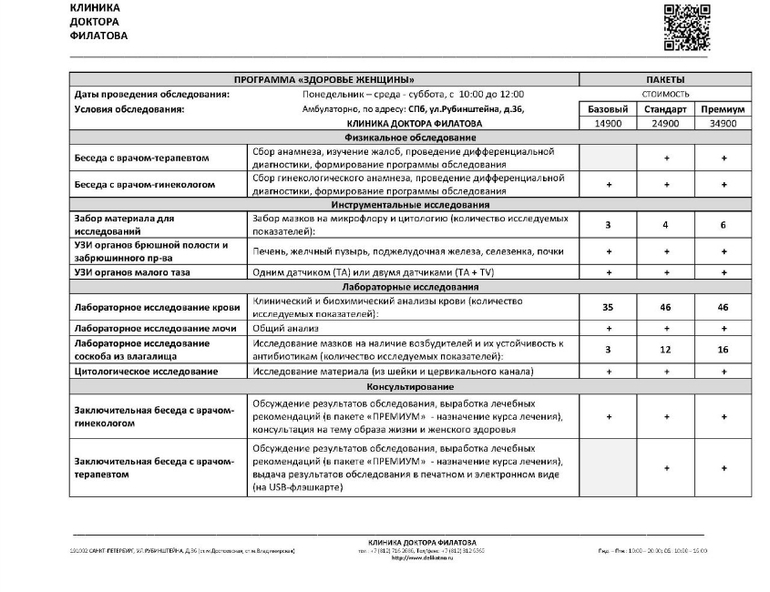 Врачи КЛИНИКИ ДОКТОРА ФИЛАТОВА разработали комплексные программы обследования практически здоровых мужчин и женщин с целью выявления заболеваний на самых ранних стадиях. Специалистами тщательно подобран комплекс диагностических процедур и анализов, необходимых для эффективного определения наибольшего количества разнообразных скрытых патологий. Это - еще один шаг по внедрению принципов ПЕРСОНАЛИЗОВАННОЙ МЕДИЦИНЫ в России.