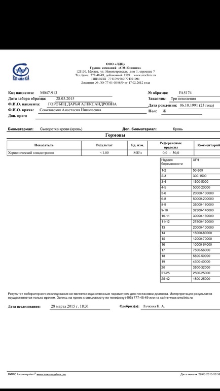 Нюра в Здоровье взрослых 11 лет Анализ на хчг Гинекология (кроме тем беременности) Пришол результат не могу понять,помогите расшифруйте Посмотрите еще 20 записей на эту тему Отменить Ответить Юлия Менее единицы Ваш результат, беременности нет 28.03.2015 Ответить Улыбака К сожалению, ХГЧ меньше единицы(((. 28.03.2015 Ответить ГВ и беременность Болят яичники Чаты Беременных Выберите чат: Январята-2026 Февралята-2026 Мартята-2026 Апрелята-2026 Майчата-2026 Июнята-2026 Июлята-2026 Августята-2026