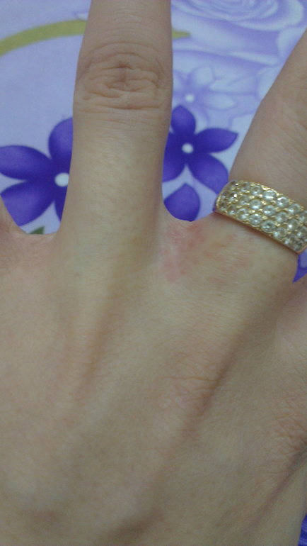 у меня было похожее от кольца,причем только на этой руке,надеваю кольцо на другую руку,все отлично, не носила его пол года наверное,сейчас решила опять надеть ,пока все норм..