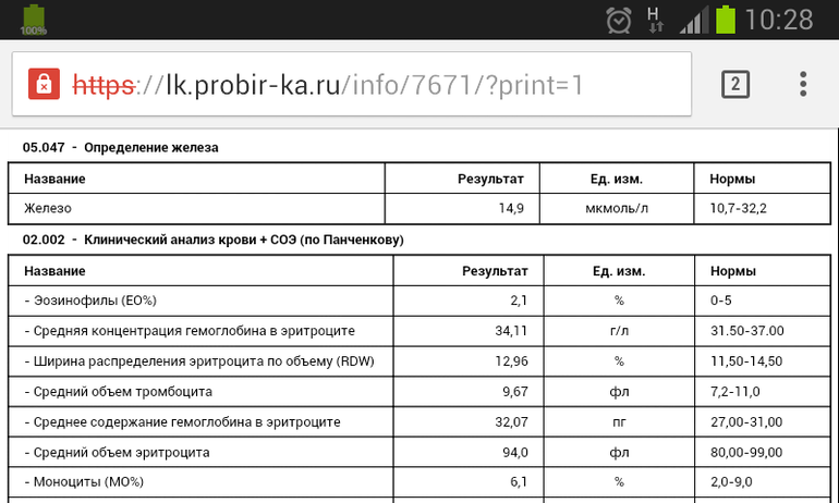 Прочие вопросы, административные моменты, справки и т. п.Чувствую я, мне надо обращаться к гематологу. Всегда был высокий гемоглобин, когда была мелкая , то мой показатель был больше чем у взрослого мужика! Сейчас я периодически смотрю свою кровь, и вот что мне пришло вчера (впервые решила сдать железо заодно) гемаглобин на верхней границе, содержание гемоглабина в эритроците выше нормы, а железа мало, ближе к нижней границе... Как так то? Кто в теме подскажите! А кто не в теме скажите ваши догадки!