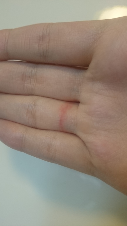 ДерматологияДобрый день, девочки! Не могу понять, что за ерунда, может, было у кого такое. Три дня назад сняла обручальное кольцо, когда руки кремом мазала, забыла одеть. И вот вчера вечером появилось на пальце с внутренней стороны на месте, где обычно кольцо, странное раздражение. Когда снимала, ничего такого не было. Что это может быть? Почему появилось? И как бороться? П.С. кольцо из белого золота, широкое, внутренний обод гладкий. У мужа, когда забудет надеть, такого не бывало (и у меня, когда снимала с другой руки серебряное кольцо - тоже). Химией сверх обычного за эти три дня не пользовалась. WTF?