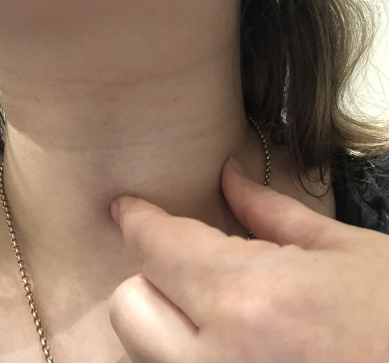 Эндокринные заболеванияУ меня паника , сейчас идёт 35 неделя беременности . Сидела пару недель назад и нащупала рукой шею , ничего не беспокоило, просто неудачно положила руку на шею, и почувствовала что левая часть плотнее и тверже правой и выделяется при прощупывании. Прибежела к доктору , доктор назначил анализы на гормоны щитовидки . Пришёл вчера результат, все гормоны в норме для моего срока беременности. Доктор сказал , ну решим вопрос после родов , ничего делать не надо . Лишилась сна . Постоянно щупаю шею , левая сторона плотная и при глотании выделяется зоб . В связи с этим начала испытывать постоянный дискомфорт в горле , не понимаю он сам по себе появился либо это из-за того что вечно щупаю шею ... накрутила себя ужасно . Что делать ? У кого был зоб в Беременность на поздних сроках с хорошими гормонами ? Это очень страшно ?? Ранее шею не трогала, не знаю было ли такое или нет до беременности ... на фото примерная доля щитовидки которая твёрдая .