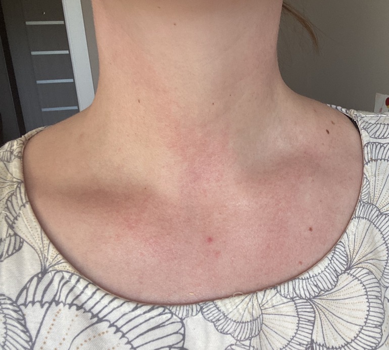 ДерматологияНачалось вчера. Ничего нового не ела не пила , украшения не ношу. Покраснела шея в мелкую точку и зудит. Таблетка зодак в день и адвантан не помогают, вчера перед сном выпила 6 таблеток лактофильтрума, сегодня в 4 утра проснулась от зуда. Больше нигде ничего. Ну щеки может чуть покраснели пару раз и все. Косметические средства свои обычные вчера не использовала уже.