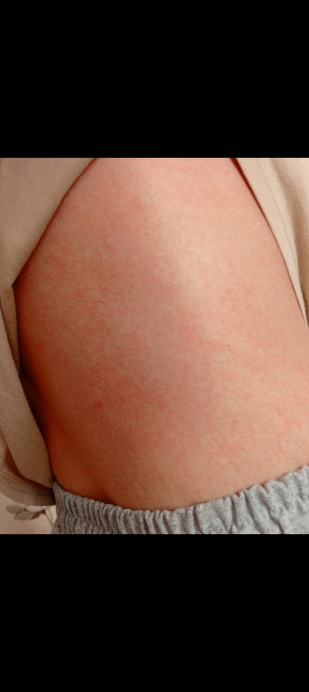 Фото прилагаю. Сыпь на теле до бедер и во внутренних сторон рук и ног. Проснувшись в 5 утра ощущаю покалывание рук и ног(как будто ёжики)сыпь не прошла, мне кажется только больше распространяется.