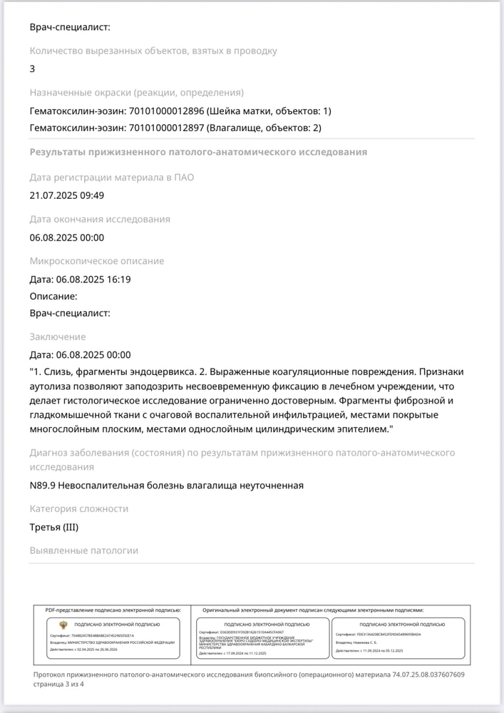 Анализы, исследованияЗдравствуйте. Три недели назад мне сделали гистерорезектоскопию, удалили полип цервикального канала и кисту влагалища. Сегодня пришли результаты гистологии, пишут невоспалительная болезнь влагалища неуточненного характера код 89.9. Не могу понять что значит.