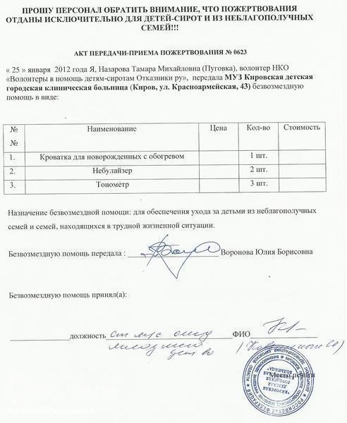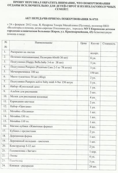 обратите вниманиеДевочки, Киров отчитался по 2-м больницам, СРЦ и центру помощи мамам и детям!!! Огромное вам всем спасибо за ваше неравнодушие, милосердие и щедрость!!!! ВСем счастья, здоровья и успехов!!!!