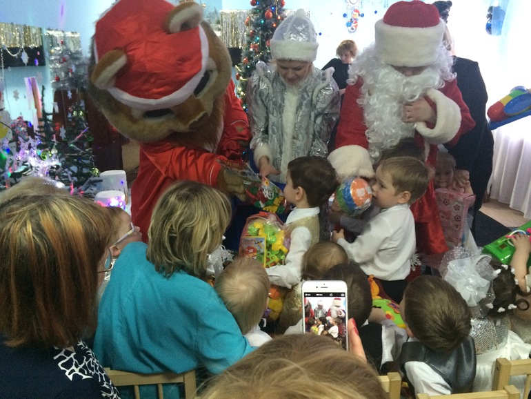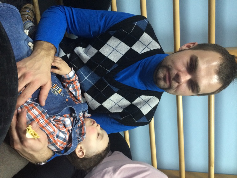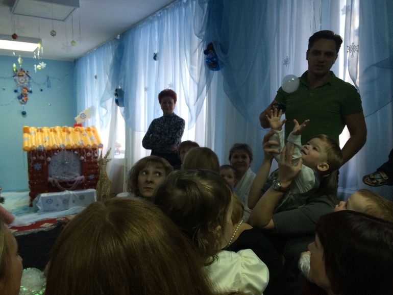 Малыш перед началом праздника попросился на руки к мужчине (одному из благотворителей) весь праздник просидел у него на руках, а потом уснул. Господи как же не хватает личного контакта этим пупсяткам