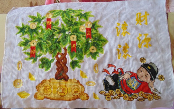 На недельке пойду в багетку оформлять, очень довольна результатом) Правда, по фен-шую размещать такую вышивку надо напротив входной двери, чтоб богатство заходило в дом, а мама как-то не сильно поддерживает эту идею... она вообще не фанат моего увлечения Китаем( Но надеюсь, мне удастся ее убедить разместить вышивку там, где я задумала))