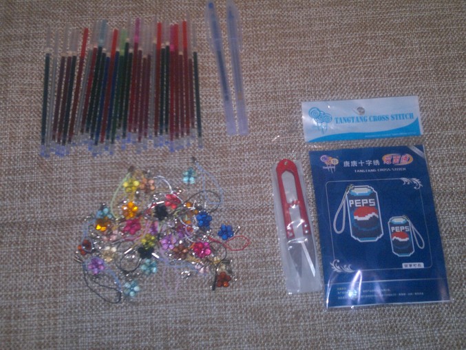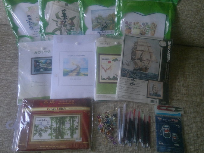 Общее фото : 9 наборов для вышивания, стержни и карабинчики для брелоков и подарочки от Маши.