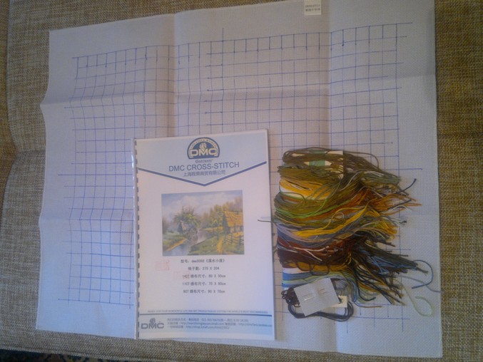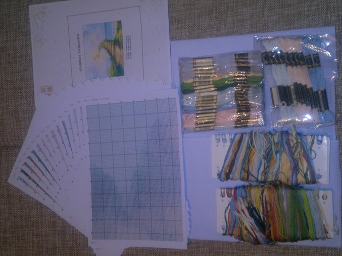 Набор "Лестница в небо": 16 канва, 90 цветов, 15 листов схемы, размер 350*275. Уже подготовила все к началу.