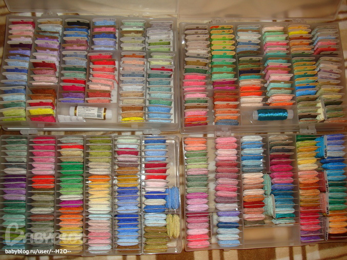 В этом наборе,который сейчас вышиваю нитки плоховатенькие(( На будущее буду брать наборы только с ниточками ДМС, в брелках например нитки отличные,шелковистые,просто супер!И в первом наборе нитки ДМС и этим всё сказано)