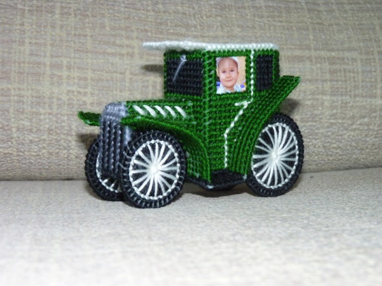 Отзывы о полученных заказахСделала у Маши 2 небольших заказика. В первом заказе был набор для вышивания машинки на пластиковой канве, и ниточки, машинку уже сделала, интересная работа была, ни разу раньше не вышивала на пластиковой канве и такими мега-огромными нитками)) вот результат: