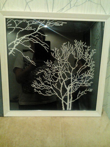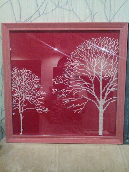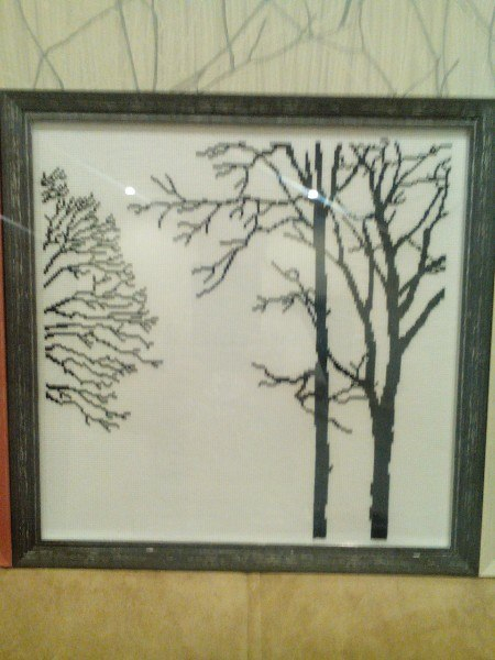Вот такой очень стильный триптих у нее получился! Стекло конечно бликует, но все равно все видать. Очень стильно, на мой взгляд)