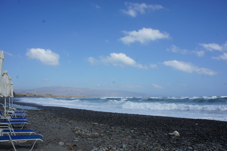 Самое главное, чего нам не хватило - это пляжа и моря, а ведь именно за этим мы и отправлялись. Конечно, я сама виновата. Отзывы читала, про галечный пляж была в курсе. Мы и раньше отдыхали на галечных пляжах, но здесь не галька, здесь камни, огромные камни по которым реально опасно ходить. Без специальной обуви не обойтись - 100%, но и с ней шагать по этим камням нужно очень аккуратно, а заходить в море и подавно. Кроме того, не радовало и само море. Мы были там 14 дней и чистое и прозрачное море мы видели 3 дня! В остальное время либо был шторм (реальный шторм с огромными волнами), либо были волны большие или поменьше, но они всегда были. После штормов (их за 14 дней было 2) и волн море было ужасно грязное, в нем плавали пакеты, водоросли, даже дохлая чайка была.