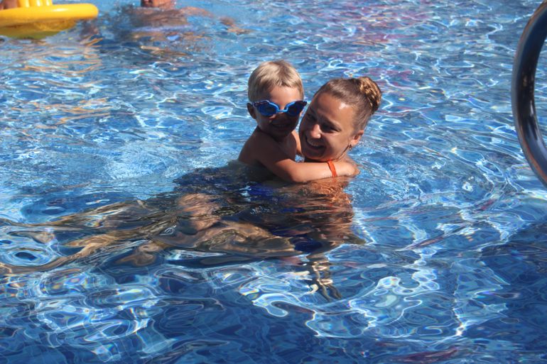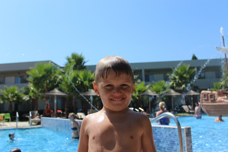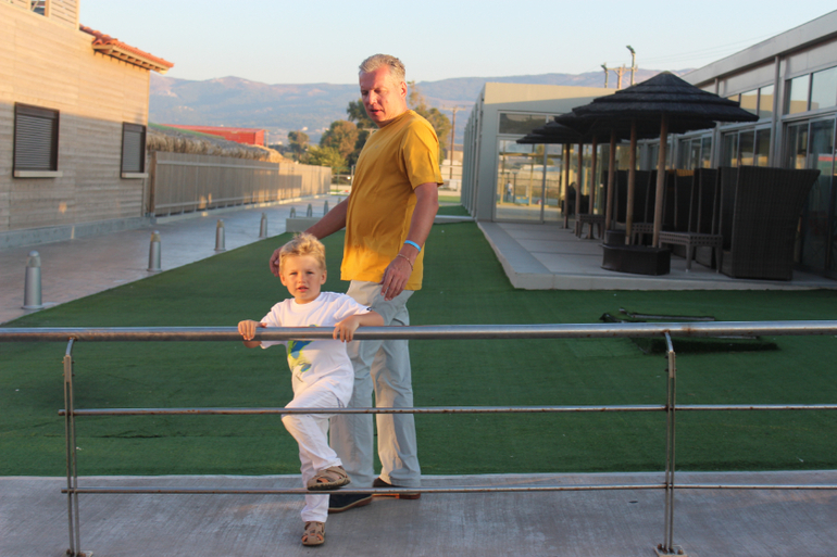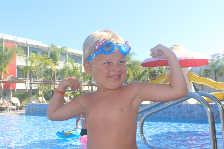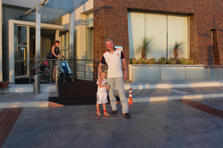Вообще спасатели строгие в Греции. Нас в аквапарке не пустили на взрослые горки) Первый раз в жизни))) Тим со мной катается с больших горок уже два года. А здесь - НИЗЗЯ) Европа, млин) Тим, конечно, расстроился безумно, да и я вместе с ним. Понимаю, что опасность наверное есть... Хотя думаю, что только теоретическая. Не знаю, можно кидать в меня тапками, но я по возможности все равно буду кататься с Тимом с больших горок. Я знаю, что все будет хорошо. Скорее, я утону, чем дам ему хотя бы хлебнуть воды, это точно! Кроме того, именно в Греции Тим научился плавать сам) Отлично под водой проплывает порядка 3-4 метров, затем выныривает, т.к. кончается воздух))))