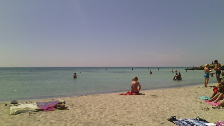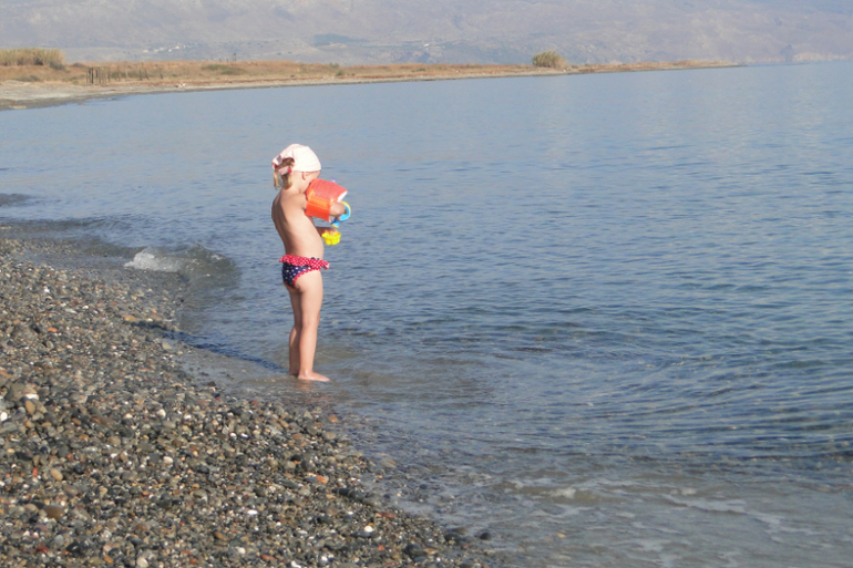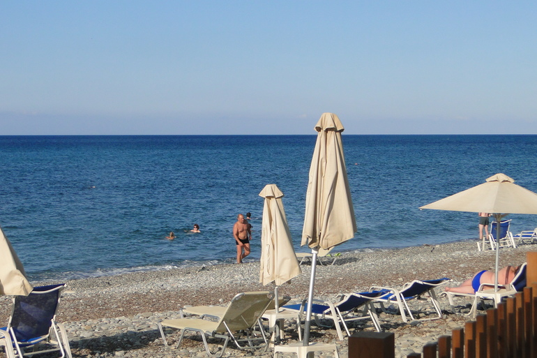 Пляж-камни. Мы это знали, но нас это не смущало. Чуть левее от отеля, мелкая галька и вход в море-песок. Ребенку и по камушкам нравилось ходить).