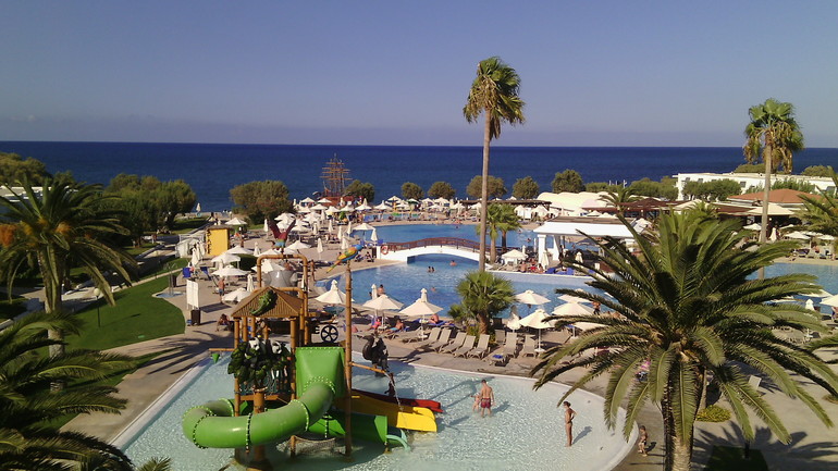 Перелёт Трансаэро. Здесь всё как всегда замечательно (вылет из Дмодедово в 6 утра). Аэропорт в ханьи очень маленький и сразу по прилёту выстраивается огромная очередь на паспортный контроль. Встречающая сторона была Библио Глобус. Здесь также никаких нареканий. Встретили, всё рассказали, в автобус посадили, до отеля довезли))).Кстати весь полный автобус ехал только в один наш отель. Соотвественно на ресепшн сразу скопилось много народа, но несмотря на это, всем сразу одели браслеты и раздали ключи от номеров.