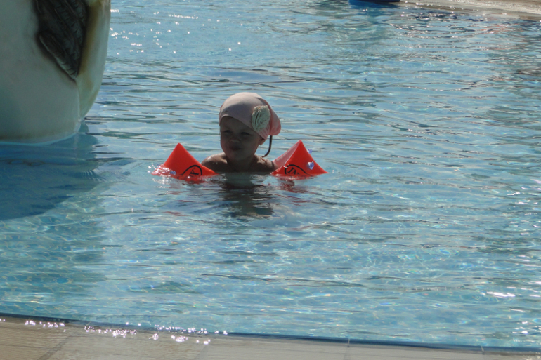 Ну и без бассейна конечно никуда. Тем более, что в бассейнах много всяких развлекух и горки (а мы большие экстремалы).
