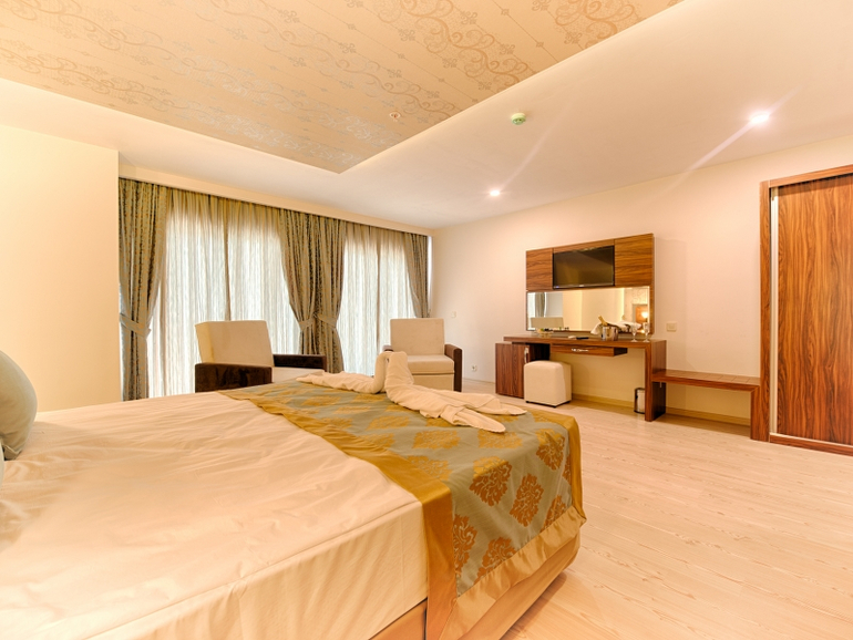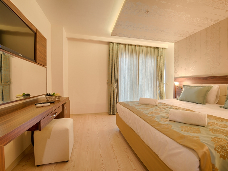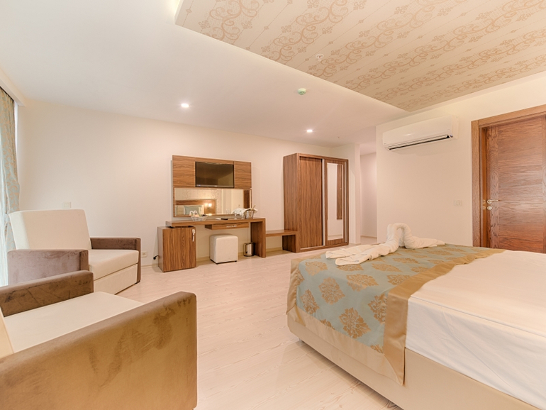 Новый отель, ОТКРЫТ В 2014 ГОДУ! Всё аккуратно, чисто и красиво! Просторные, светлые номера! Высокий уровень сервиса! Разнообразное, вкуснейшее питание по системе всё включено! Отель расположен на второй линии, имеет свой собственный пляж с лежаками и зонтиками, а так же баром с напитками и закусками! До пляжа отельный шатл каждые 15 минут!