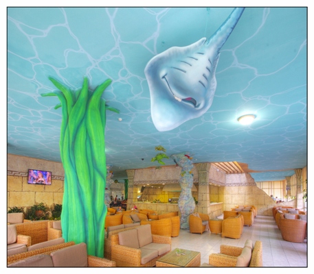 Дети здесь VIP-персоны, каждый уголок предназначен только для них. По прибытии в отель дети уже знают, что они попали в сказочный мир: черепахи, свисающие с потолка, кораллы, морские водоросли, детской бар и детский ресторан со специальным меню.